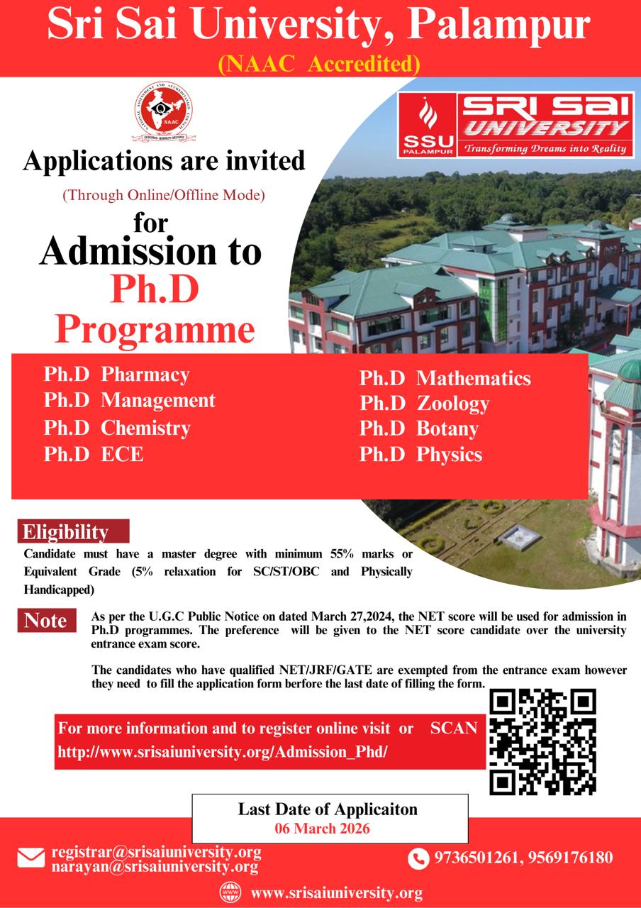 'Sri Sai University is established with the objective for professional and technical value-based education as State Private University vide Act No.3 of 2011 of State...Read more...